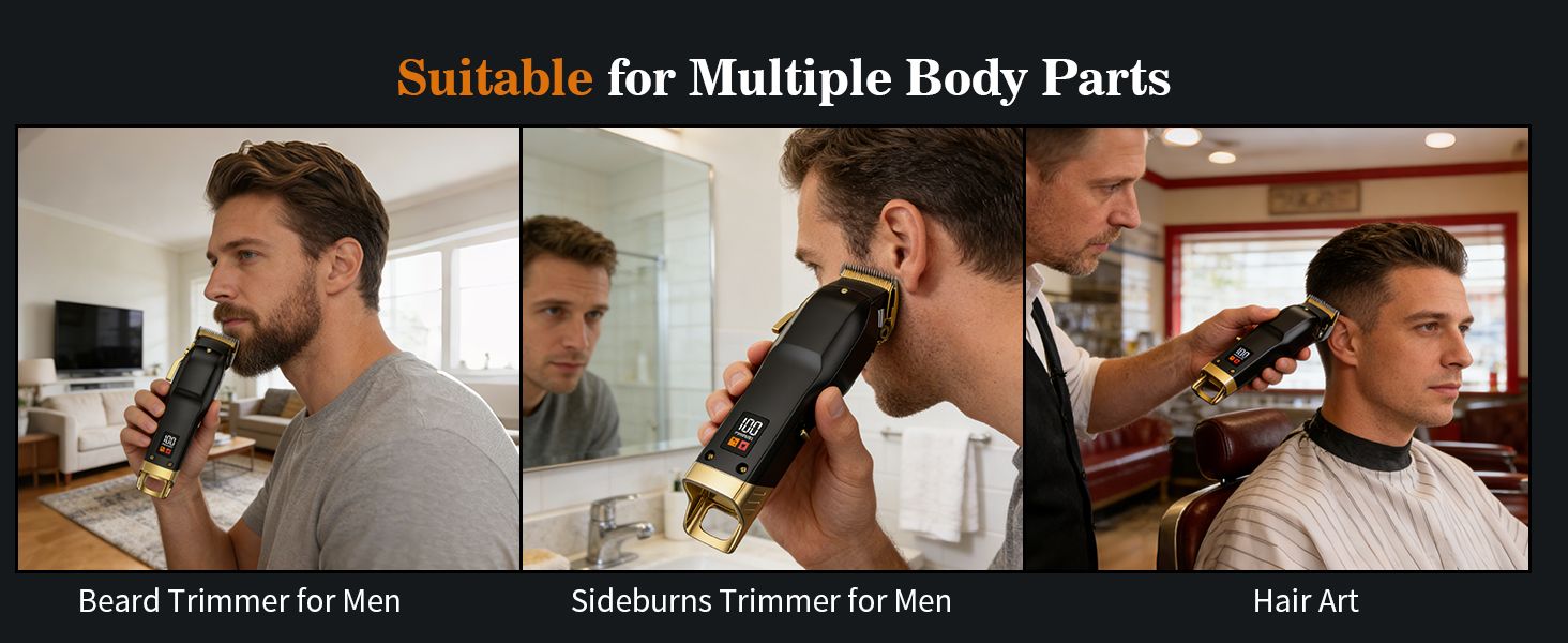 Ideal for hair cutting and beard trimming, comes with professional barber accessories, suitable for use on face and neck.