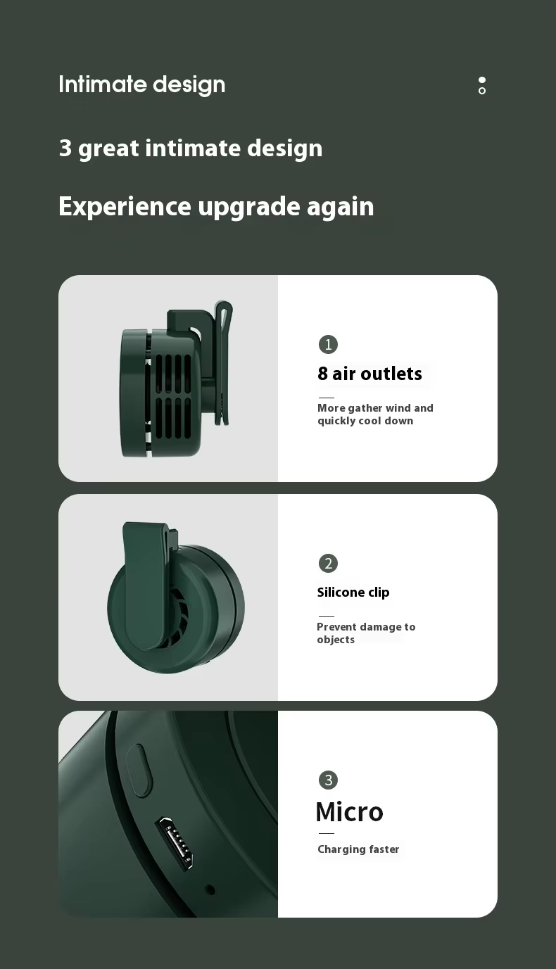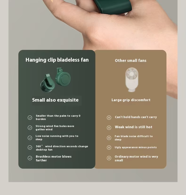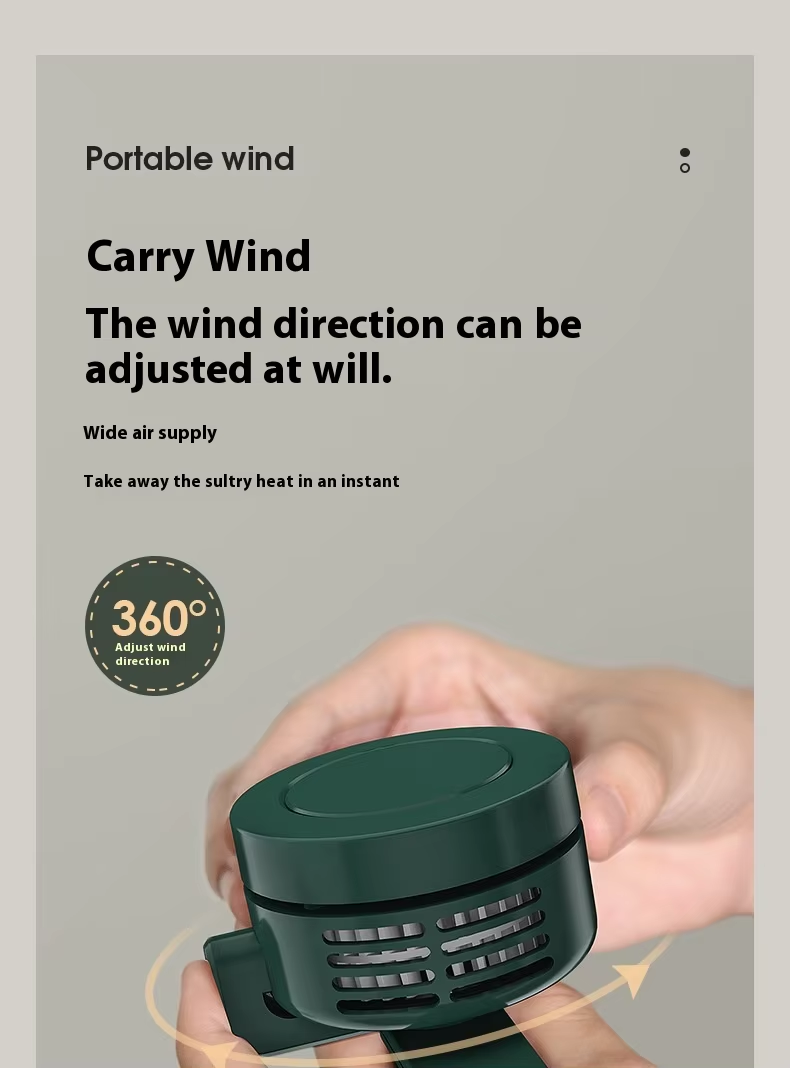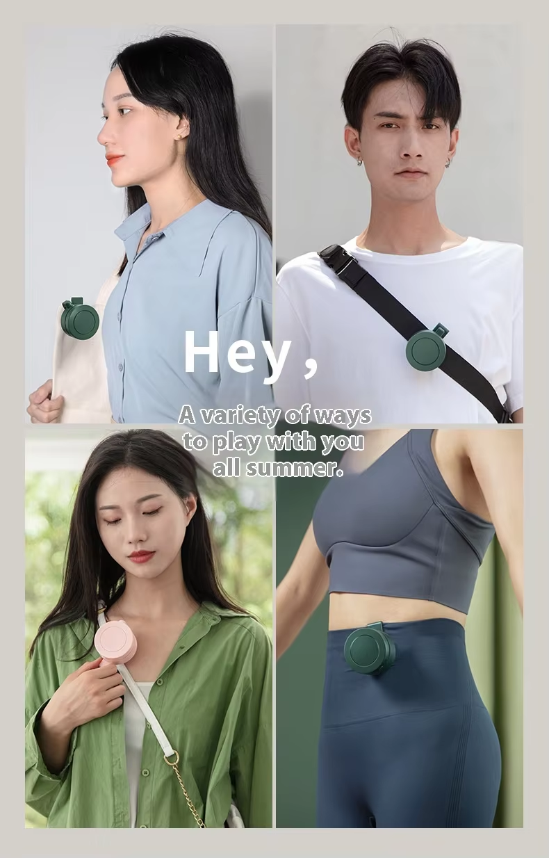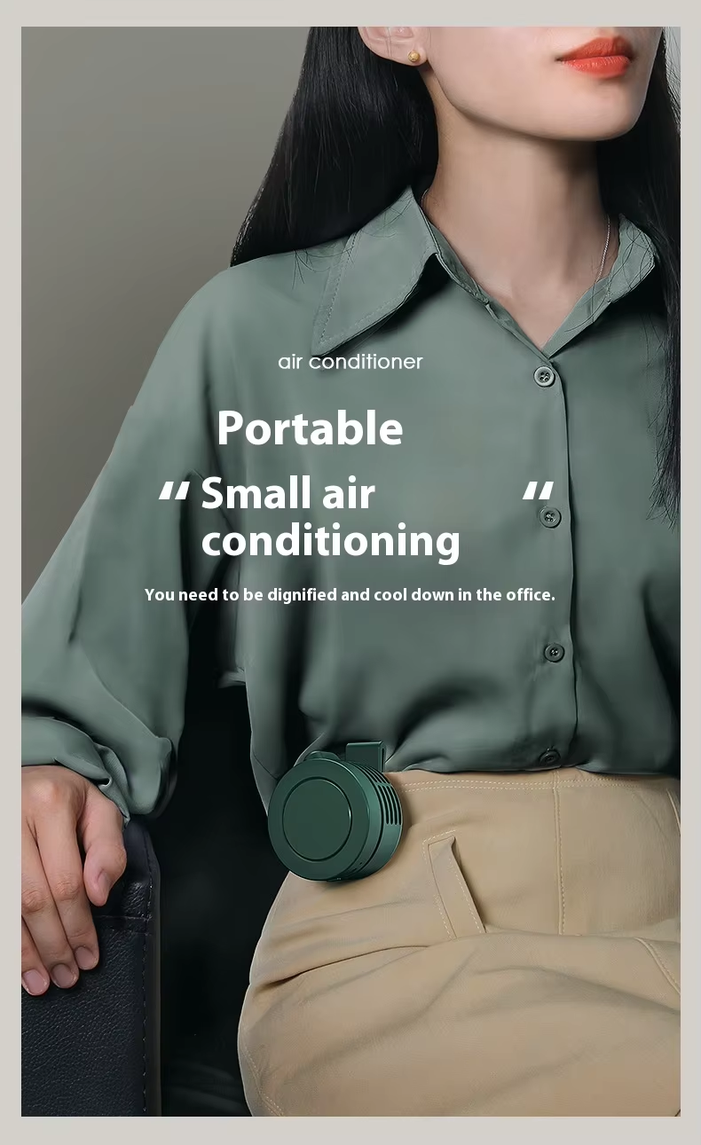 Electric air-cooling fan: wearable clip-on neck and waist strap