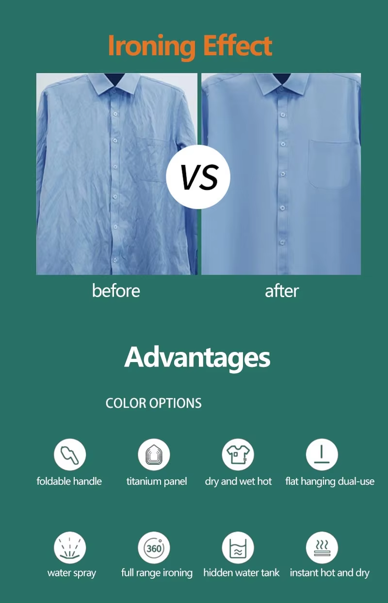 Portable Electric Handheld Steam Iron: Mini Rotating Foldable Iron for Home and Travel, Suitable for Both Dry and Steam Use
