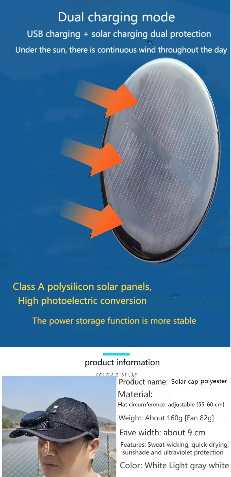 Solar-Powered Charging Fan Hat