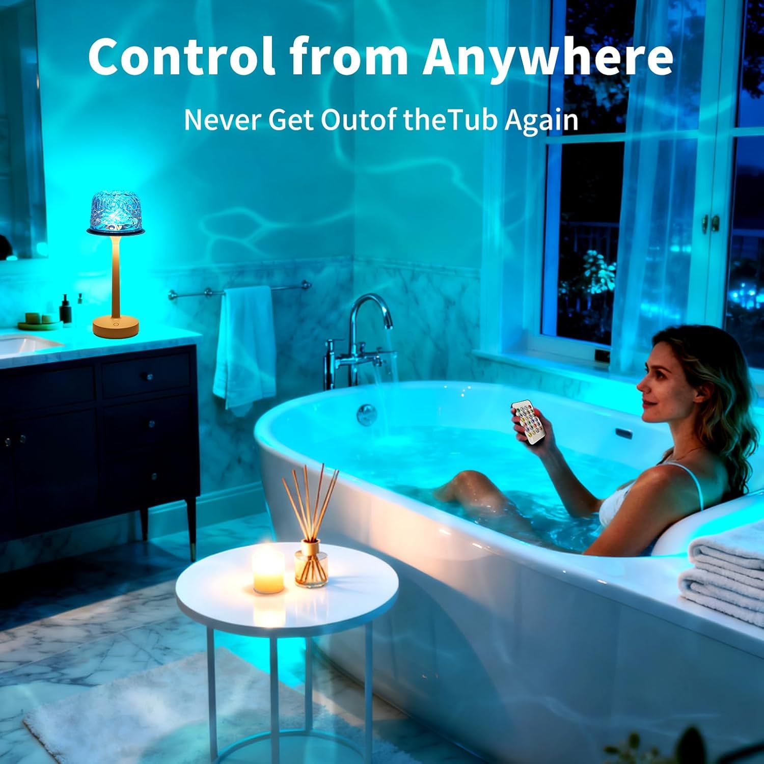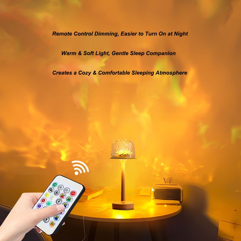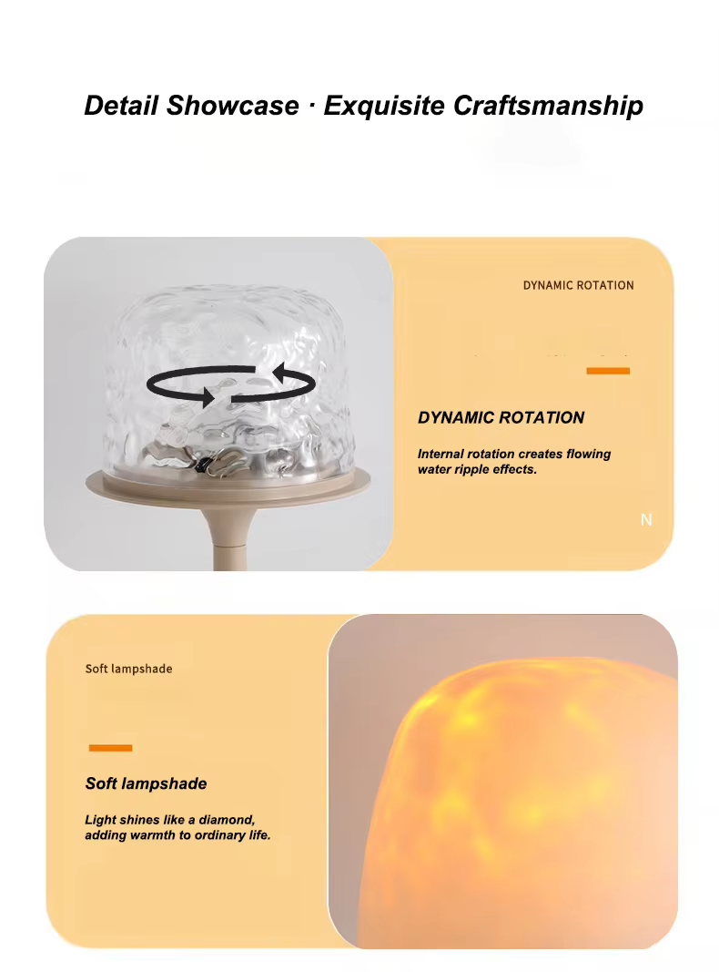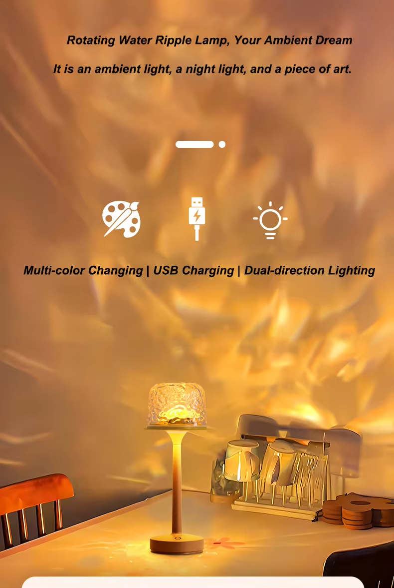 Tall Water-Ripple-Patterned Ambient Projection Table Lamp – Bedroom and Bathroom Night Light