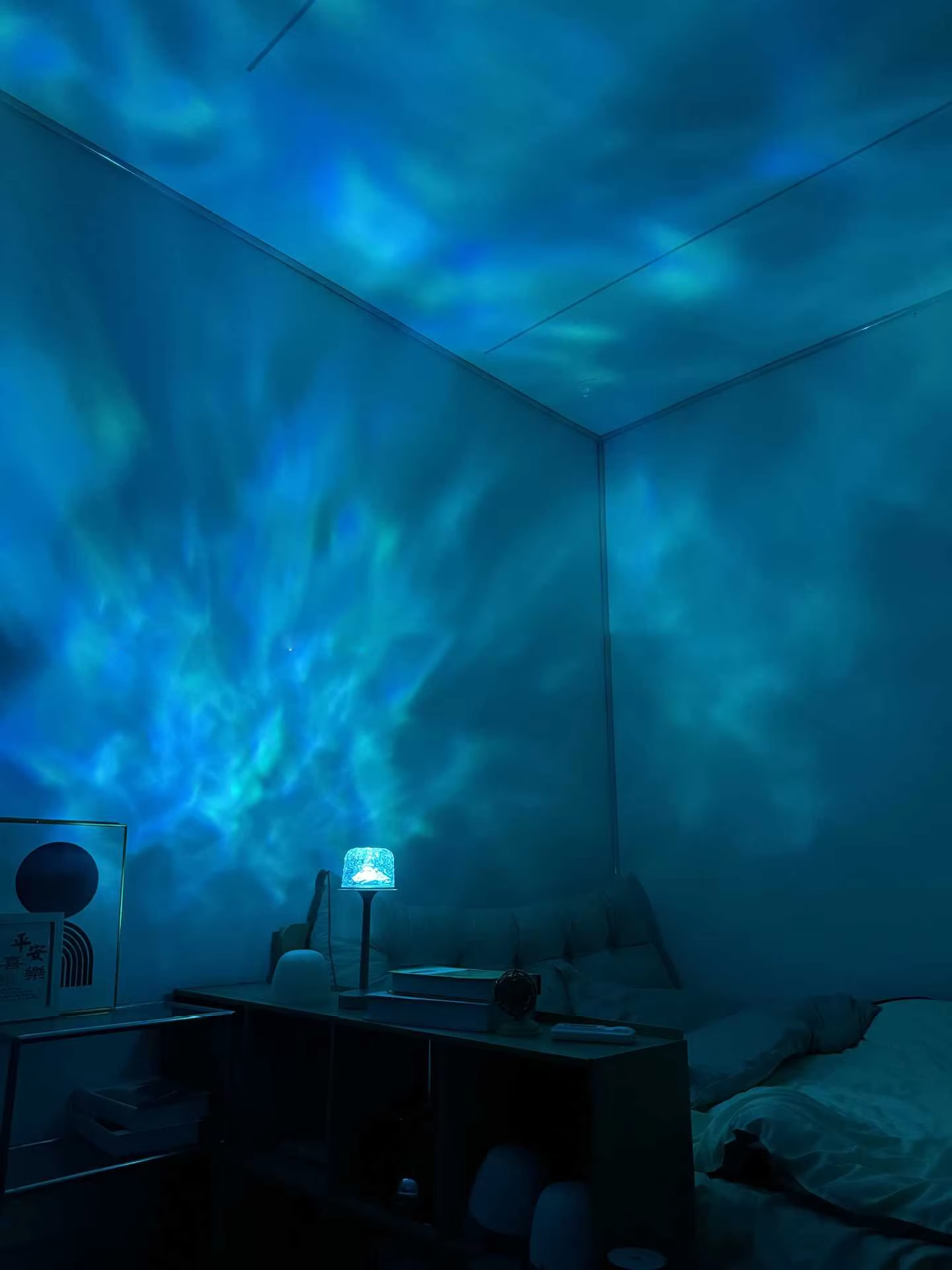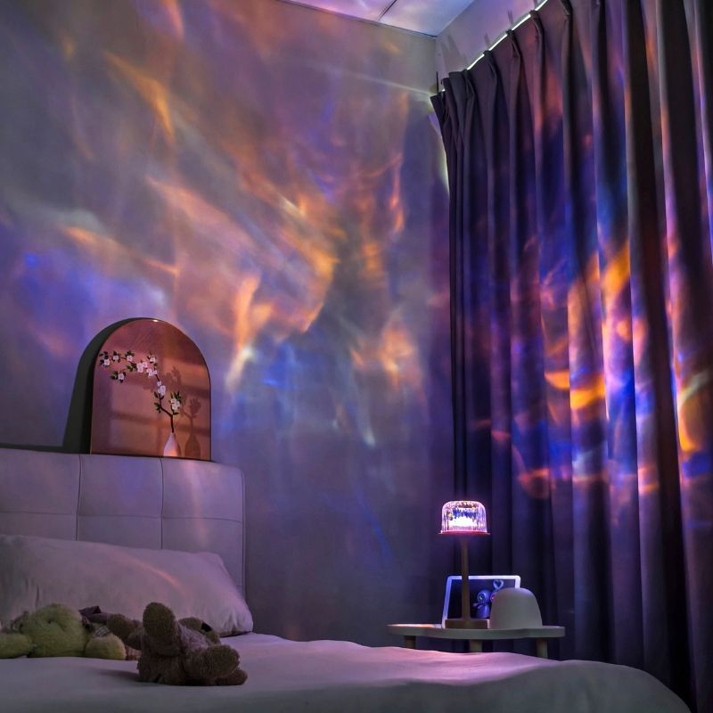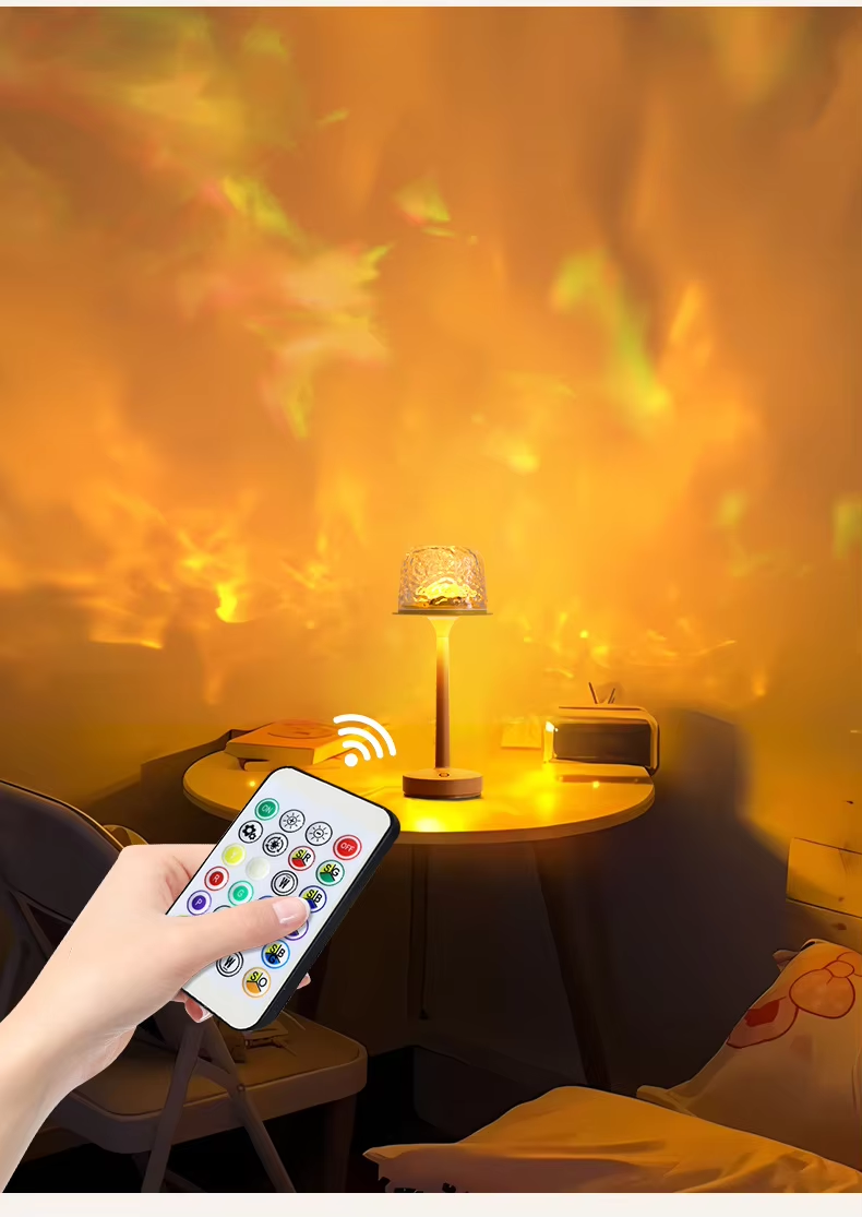 Tall Water-Ripple-Patterned Ambient Projection Table Lamp – Bedroom and Bathroom Night Light