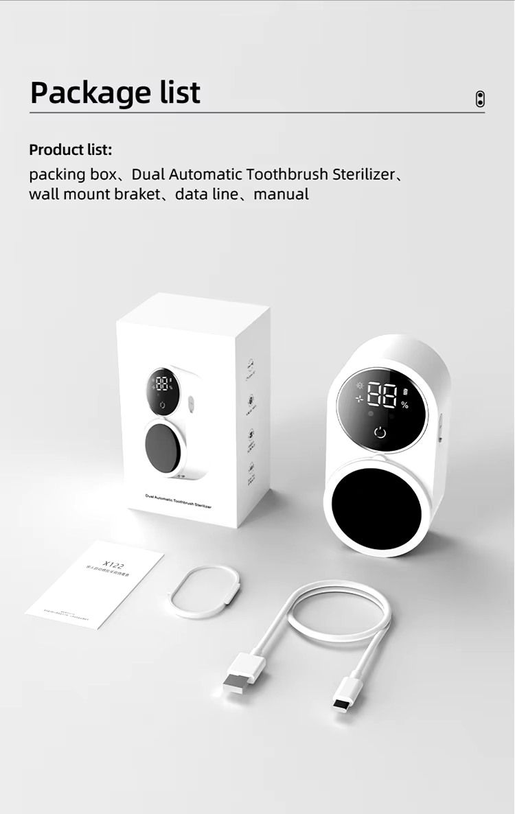 | Function | UV Sterilisation for Toothbrush Heads, UV LED Steriliser | Sterilisation Rate | 99% |