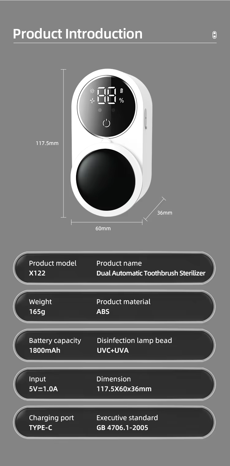 | Material | ABS, Silicone | Type | UV Toothbrush Sanitiser |