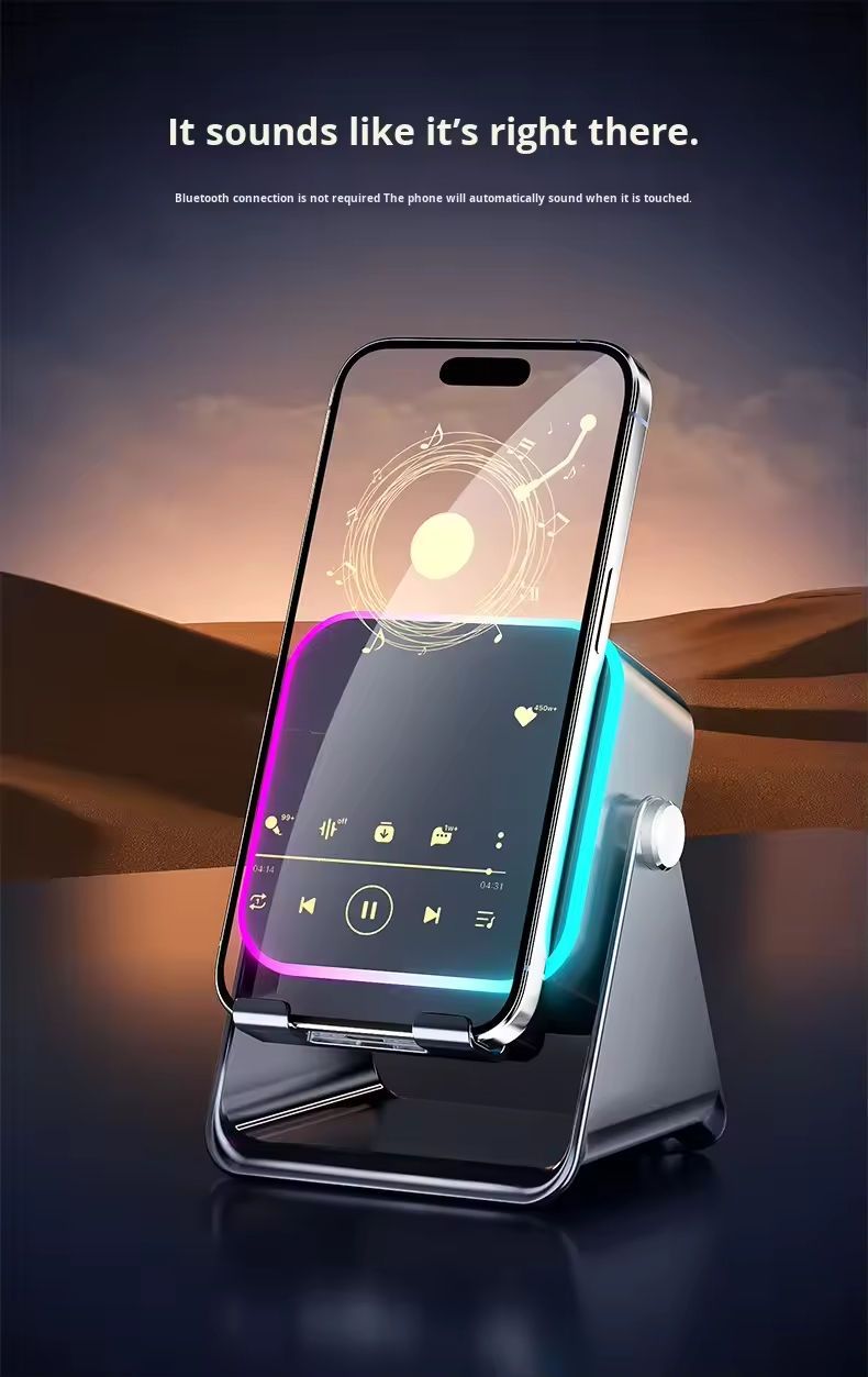 Wireless sensor speaker, mobile phone desktop stand with ambient light, portable speaker