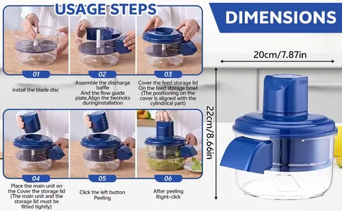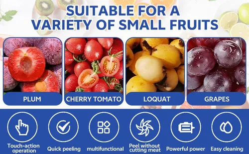 Automatic peeler for garlic, grapes, tomatoes, fruits and vegetables, ideal for home use.