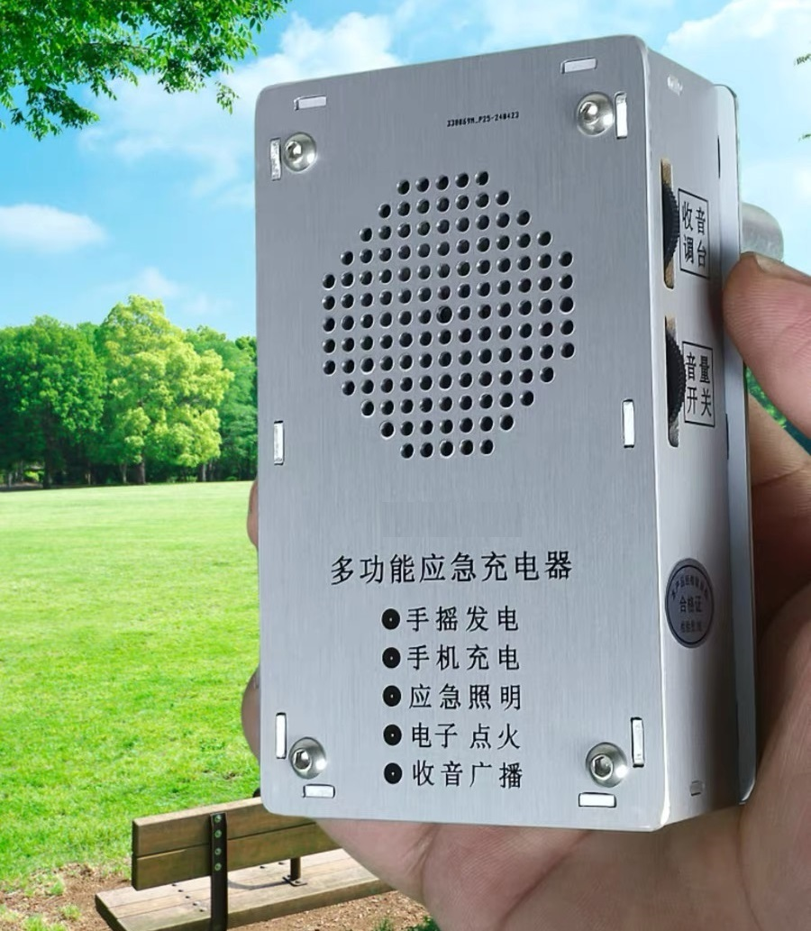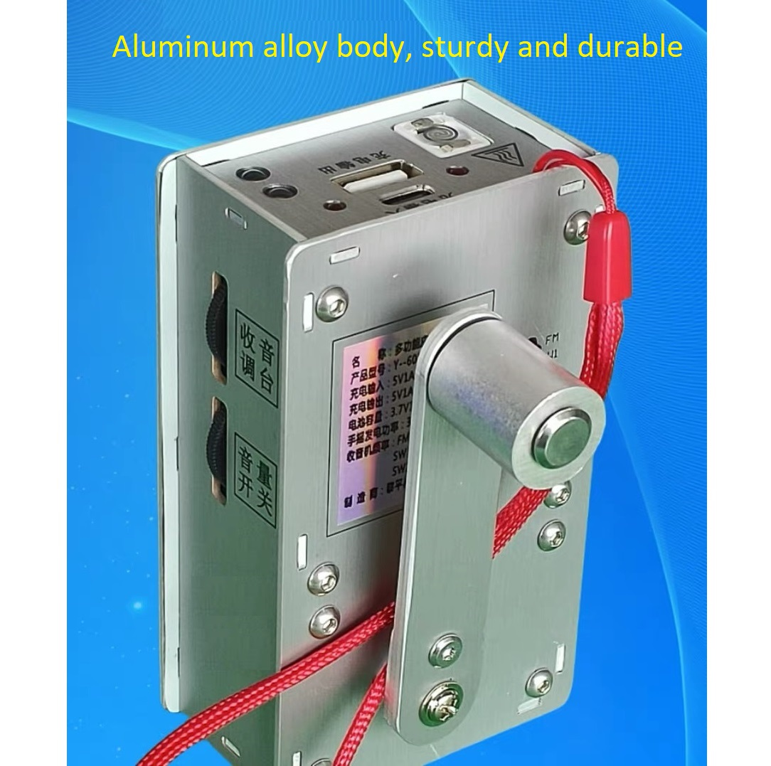 Hand-cranked generator, radio, USB charging igniter, flashlight, emergency charger