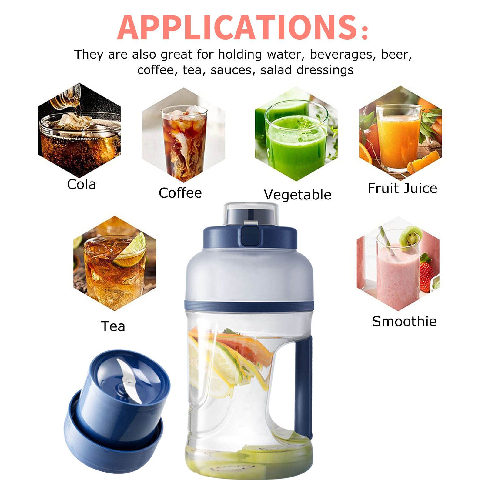 Large juicer with bottle and cup, cordless smoothie, fruit blender, outdoor USB portable electric juicer blender.