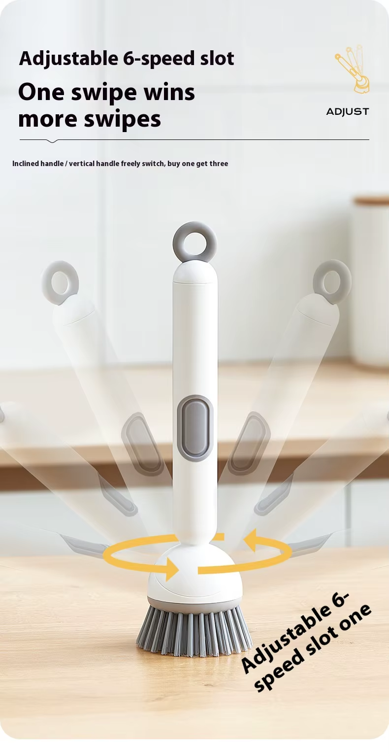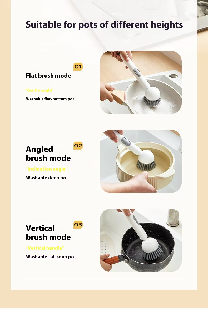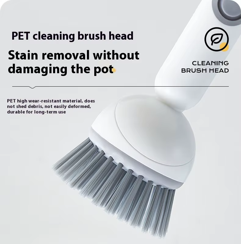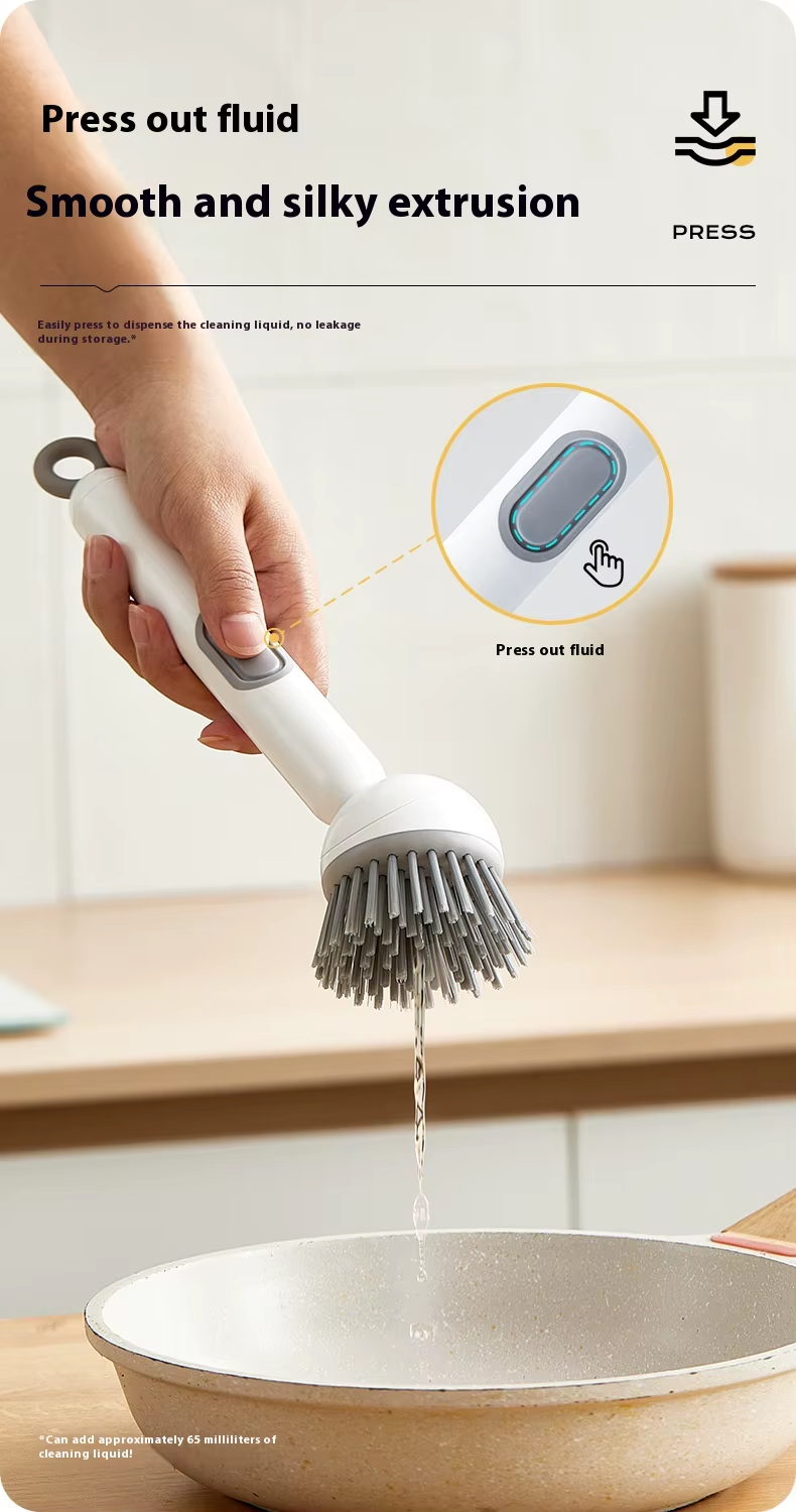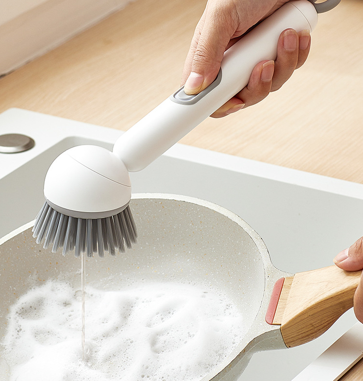 Long-handled rotating pot brush with automatic cleaning solution dispenser