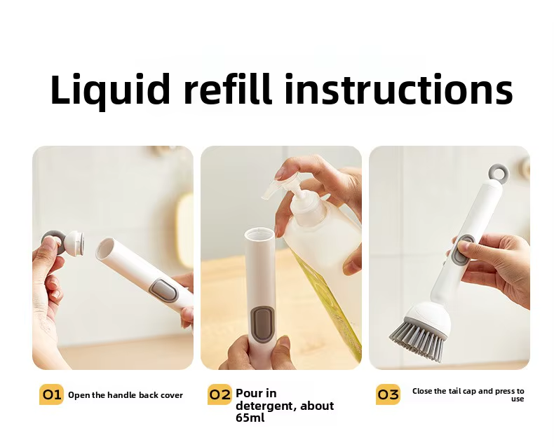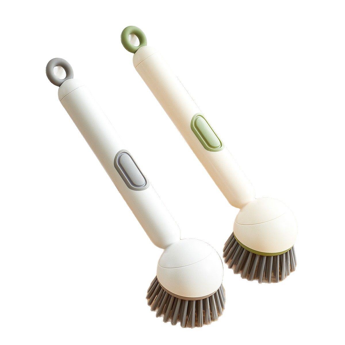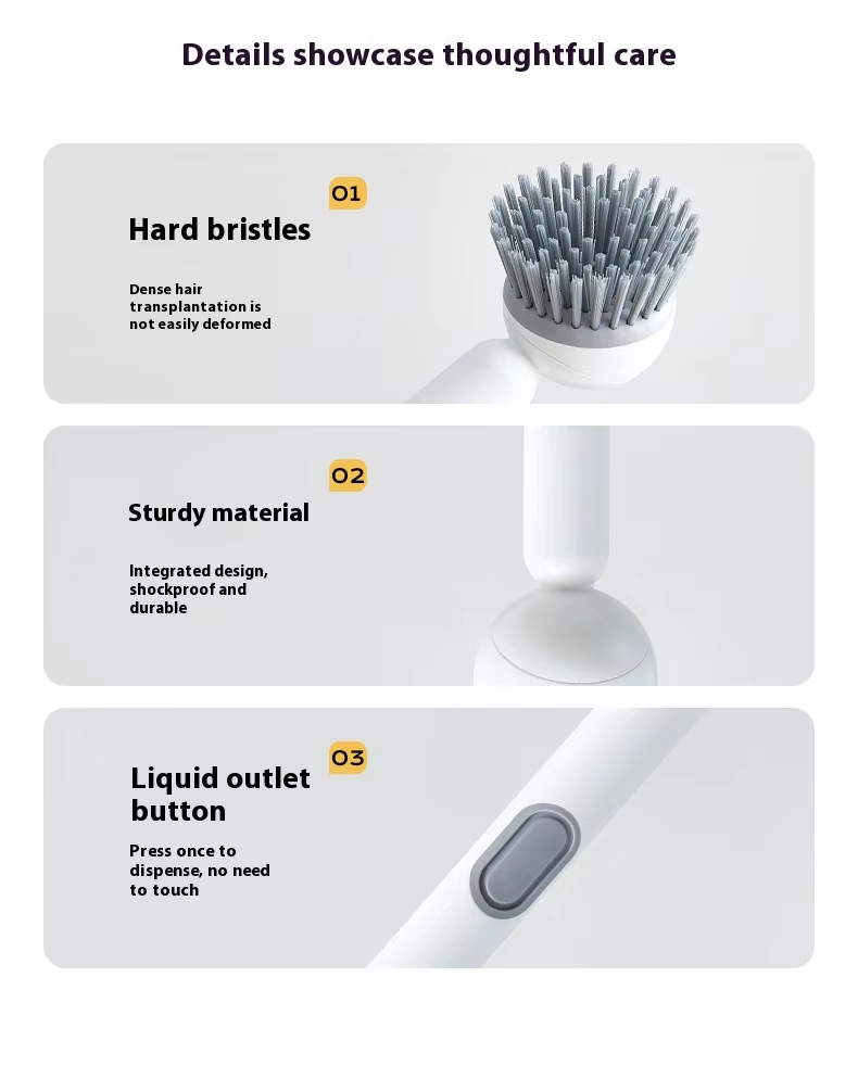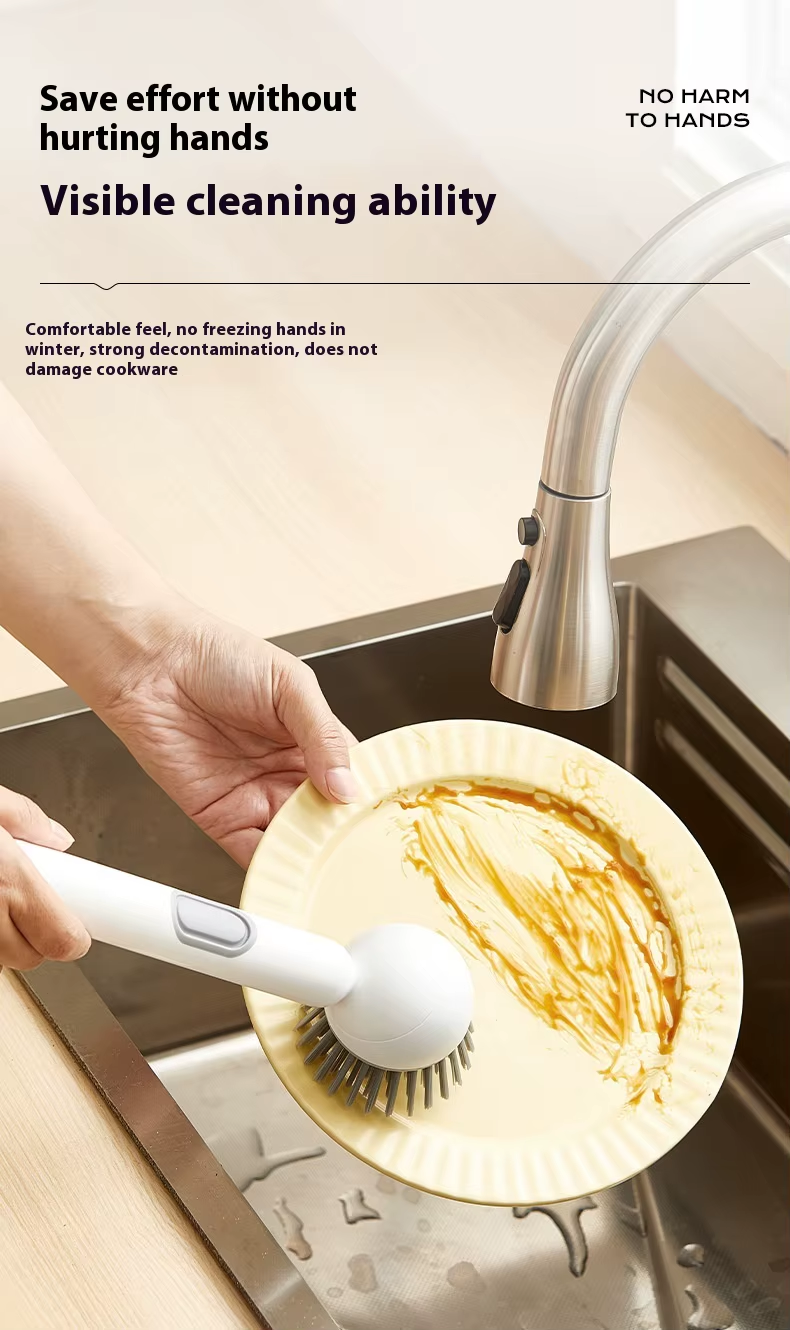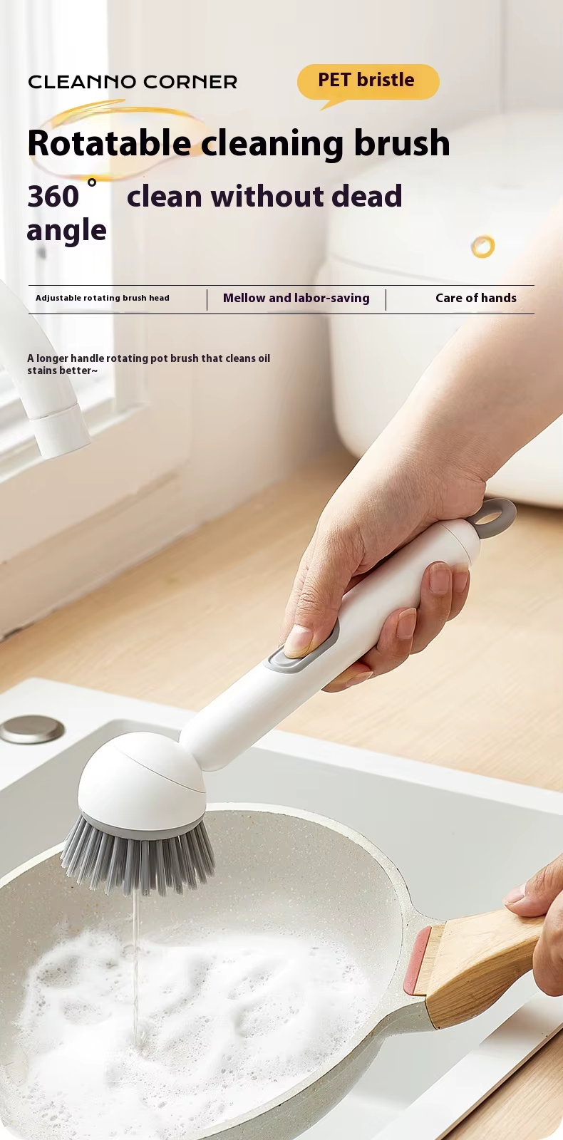 Long-handled rotating pot brush with automatic cleaning solution dispenser