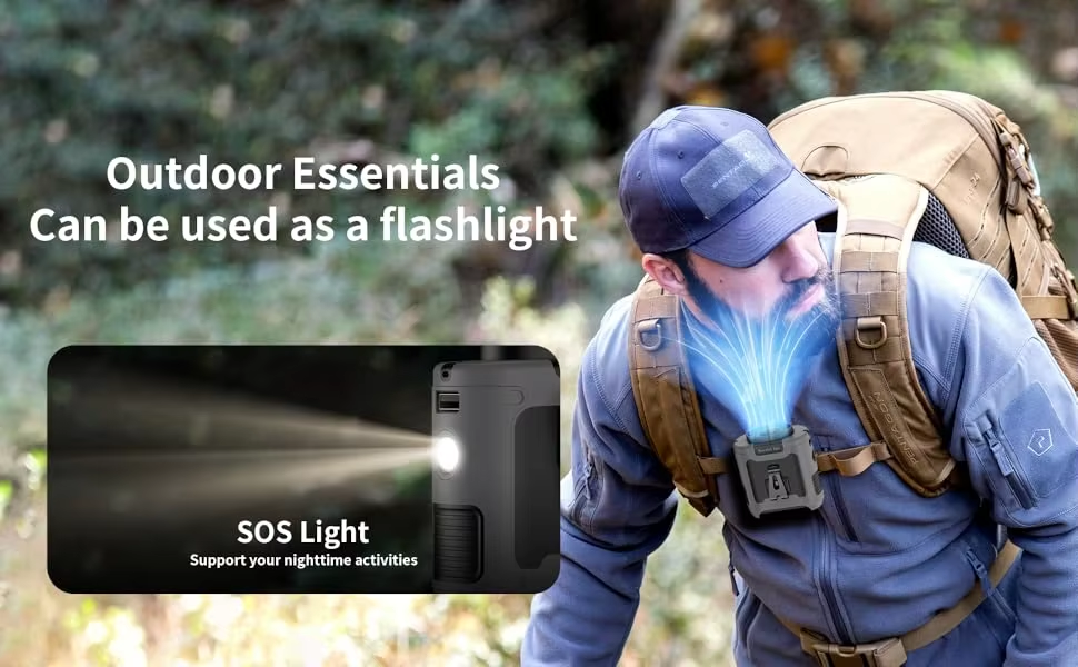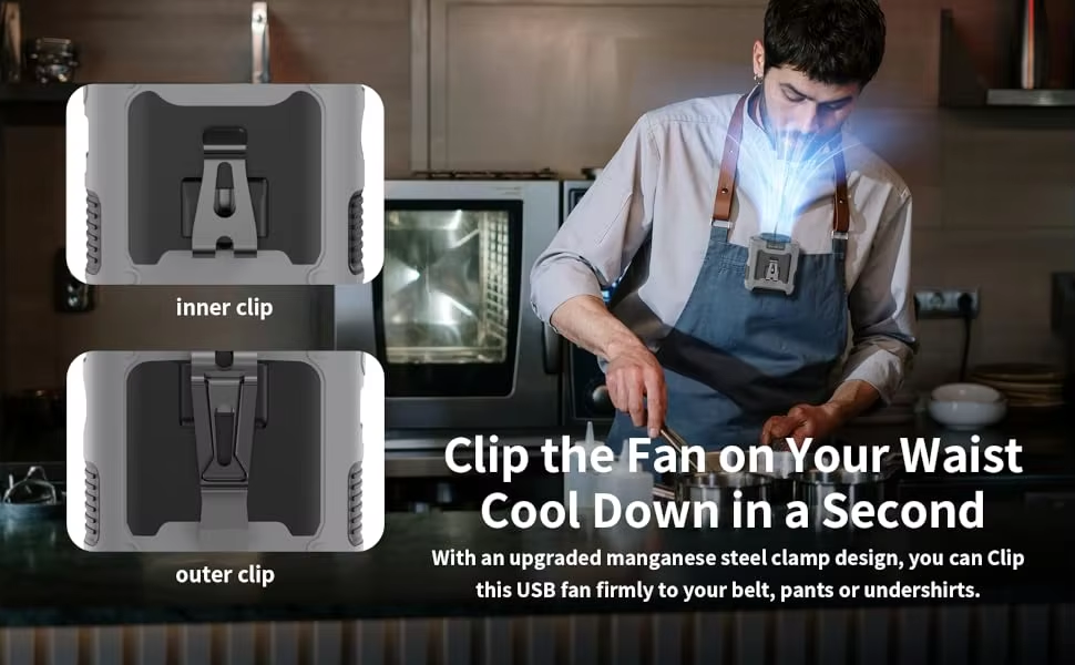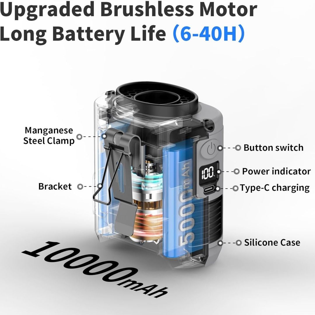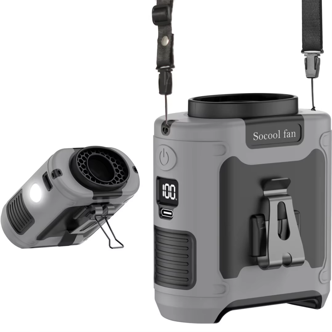 This is an innovative 2-in-1 waist fan. It has a built-in 10000mAh large battery, which can be used as a power bank to charge a mobile phone while also providing long-lasting cooling. Its portable design can be clipped onto a belt, making it ideal for use while camping outdoors or working.