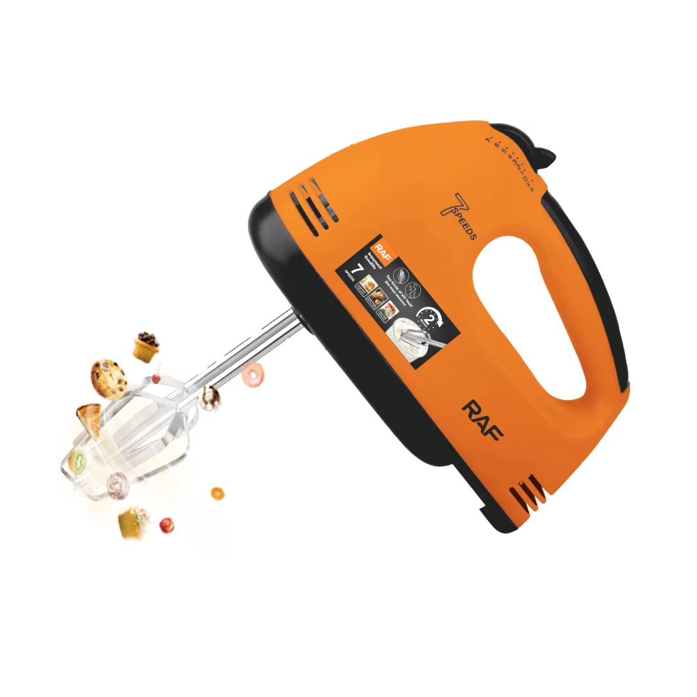 This versatile electric food mixer is a multi-purpose tool that meets all your baking needs. With 7 variable speeds, it easily handles everything from kneading dough and whipping cream to mixing eggs. The set includes dough hooks, a mixer paddle, and a egg beater, making it the ideal kitchen helper for your cakes and breads.