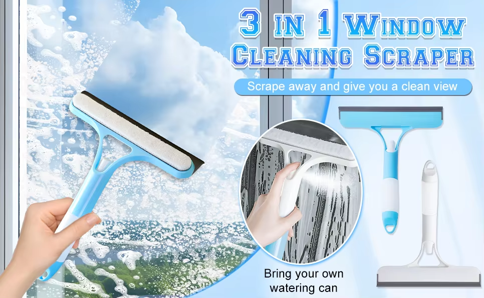 Professional cleaning tool: glass and silicone scraper, for bathroom mirrors, windows and floors