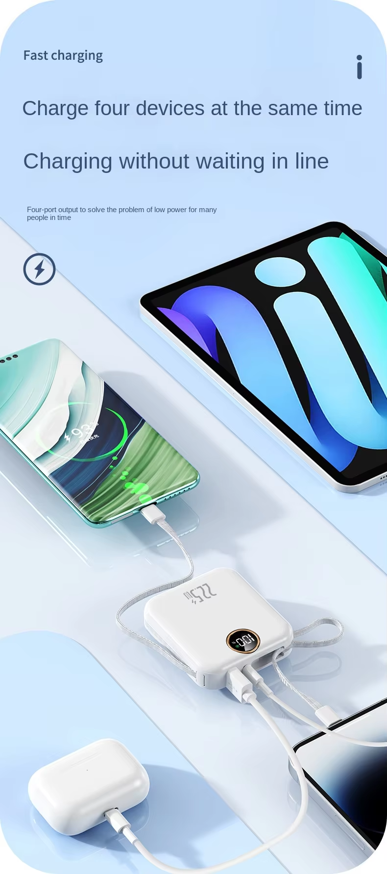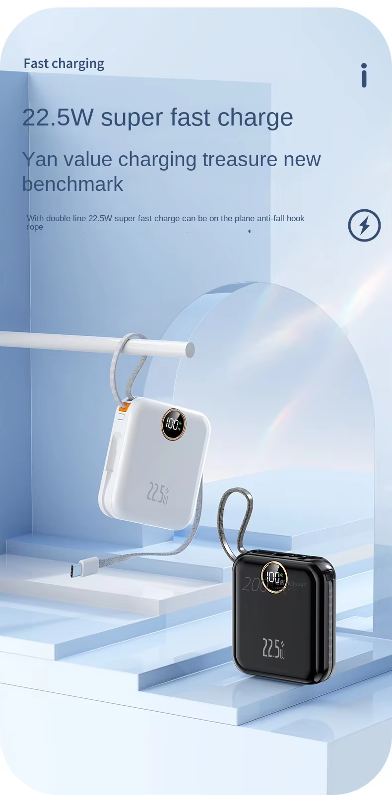 Portable Ultra-Fast Power Bank, flight-approved and carry-on compliant. Designed for travel, it delivers ultra-fast charging in a compact size, letting you recharge anytime, anywhere and stay powered up on the go.