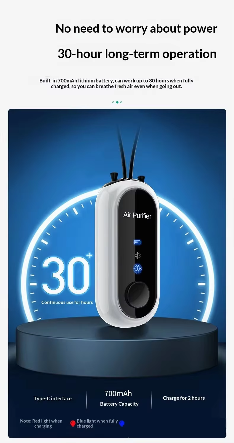 Long Battery Life: Lasts up to 30 hours on a single charge, providing continuous purification.